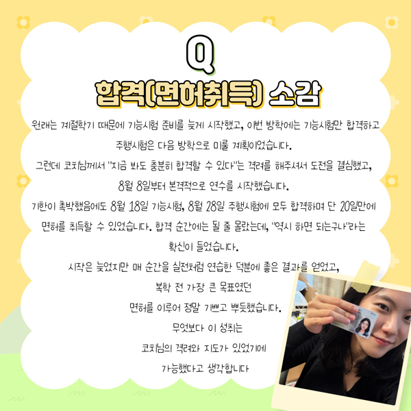 자랑스러운 운전스테이션 1호 운전면허 취득자 탄생